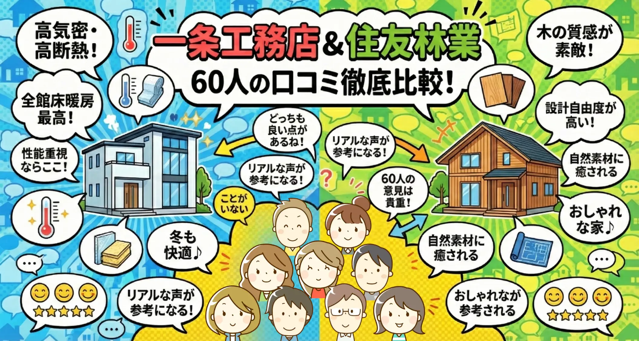 【2026年】一条工務店VS住友林業!60人の口コミでわかった決定差更新日:2026年1月13日公開日:2024年8月18日ハウスメーカー・工務店の選び方 【2026年最新】一条工務店と住友林業、建てるならどっち?施主60人の口コミから「HUGme」や「断熱等級7」、「値上げ」のリアルを徹底比較。元HM営業のFPが、性能・デザイン・価格の決定的な違いと選び方を解説します。 続きを読む